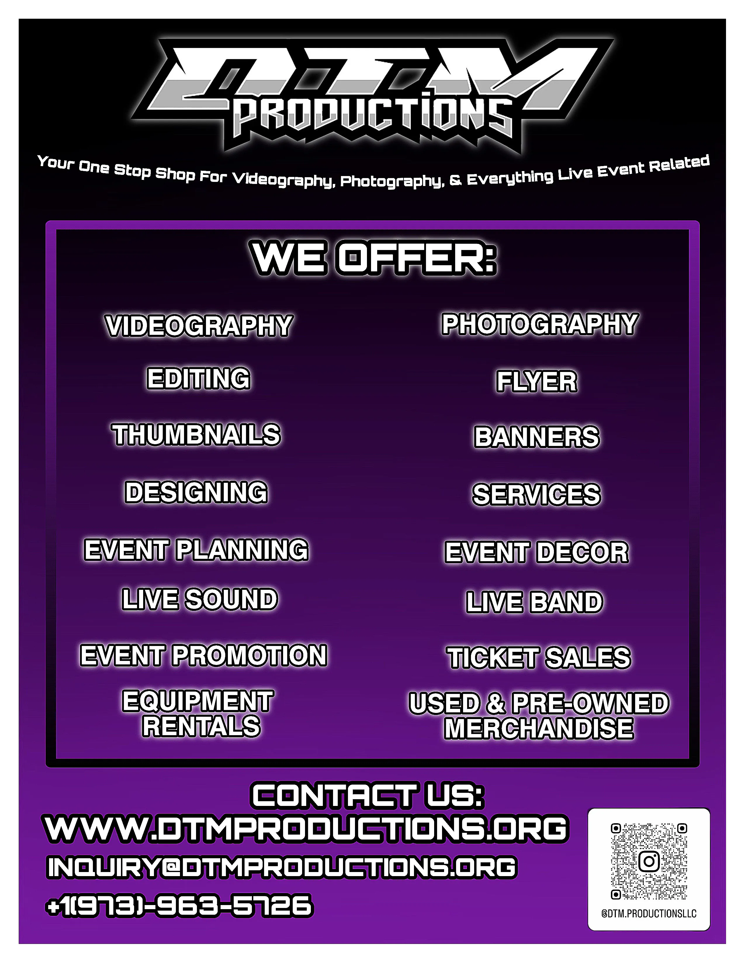 At DTM.Productions, we are a dynamic and innovative production company passionate about bringing creative visions to life and the smiles and joy we bring to our clients. We specialize in high-quality production across the board including video, photo, music, and all live event needs. Our team thrives on collaboration, creativity, and a commitment to excellence. We’re always looking for talented individuals who are driven, resourceful, and eager to make a meaningful impact in the world of production. If you’re passionate about storytelling and want to be part of a growing company where your skills will be valued and nurtured, we encourage you to apply and join the DTM.Family!